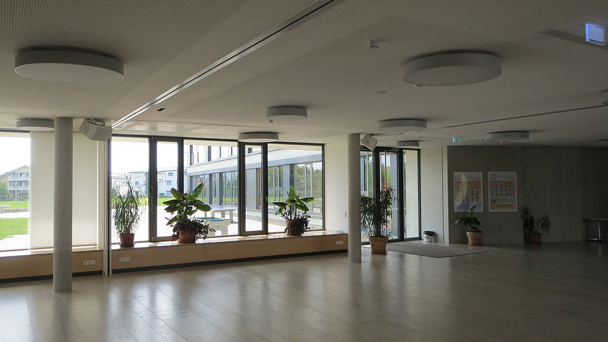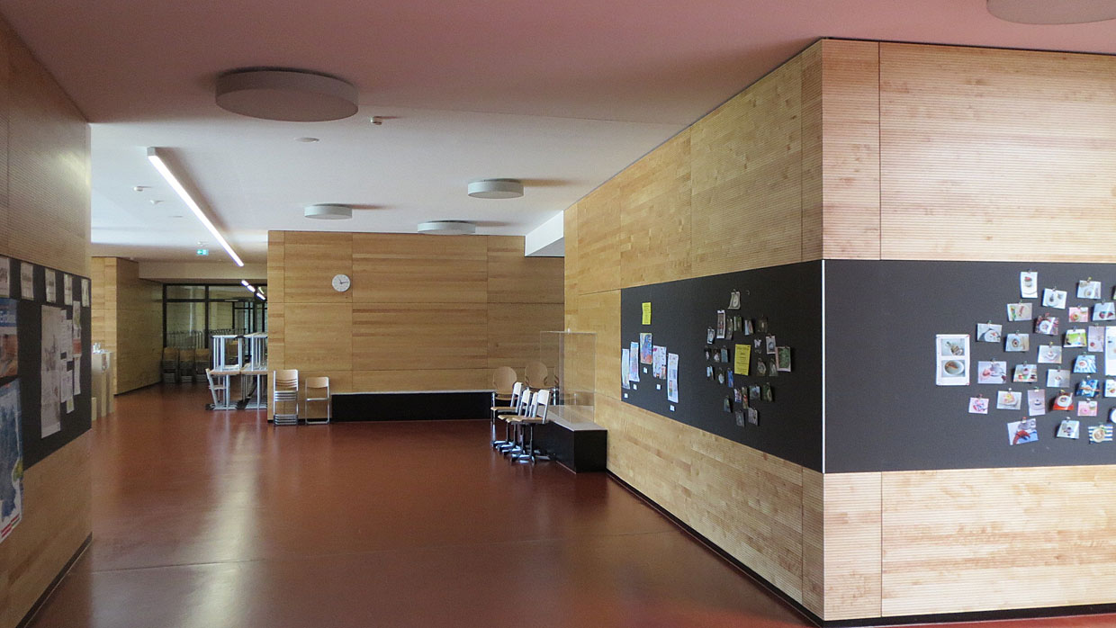 Das Gymnasium ist derzeit zweizügig konzipiert und wurde 2012 fertiggestellt. Das 2-geschossige Gebäude umfasst Fachräume für Schulklassen, die in sogenannten Clustern organisiert sind. Gruppenräume, Fachklassen für Naturwissenschaften, Musik, Bibliothek und Verwaltungsräume ergänzen das Raumprogramm. Im Erdgeschoss lassen sich diverse Räume mittels mobiler Trennwände mit der Aula zusammenschalten, so dass bei großen Veranstaltungen das Foyer als Versammlungsstätte genutzt werden kann. Das Gebäude öffnet sich durch seine Form zu allen Seiten hin und durch die Stellung der einzelnen Gebäudeflügel entstehen klar definierte Außenräume, wie der Pausenhof oder der Eingangsbereich.