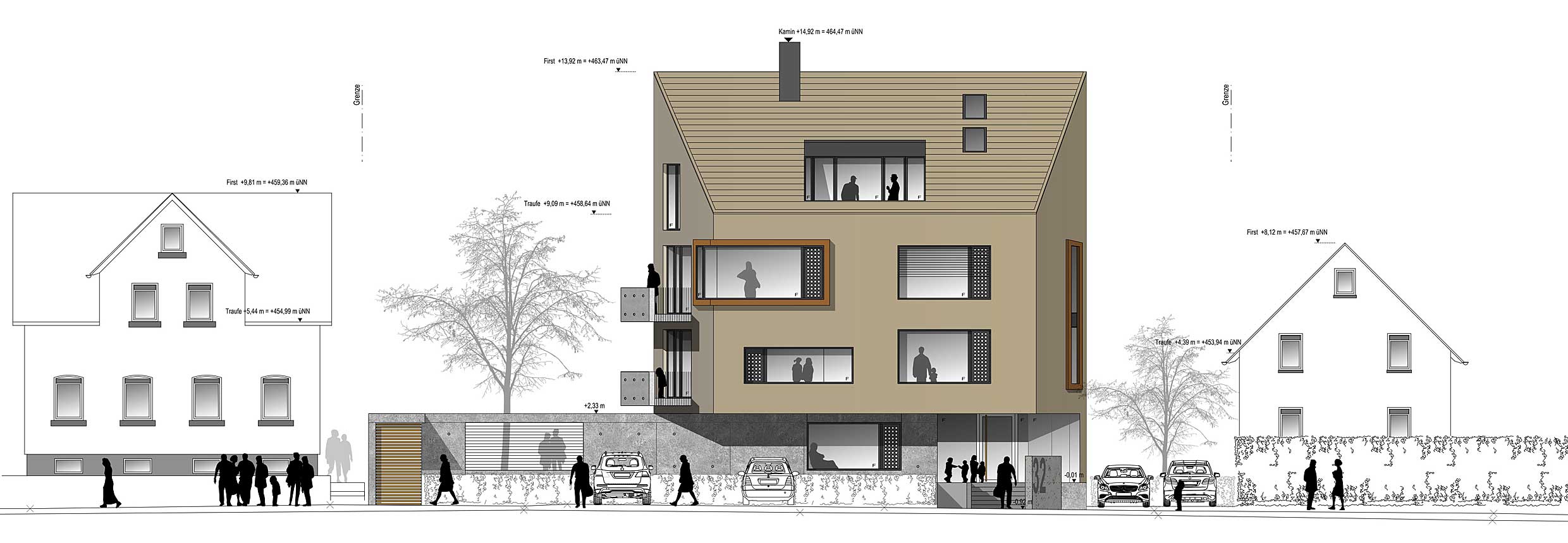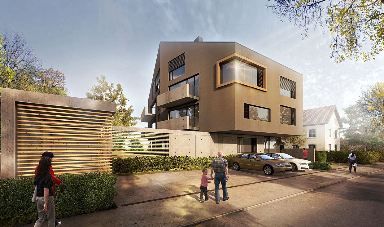 Dieses moderne Mehrfamilienhaus bietet auf vier Etagen Platz für insgesamt sieben Wohneinheiten.